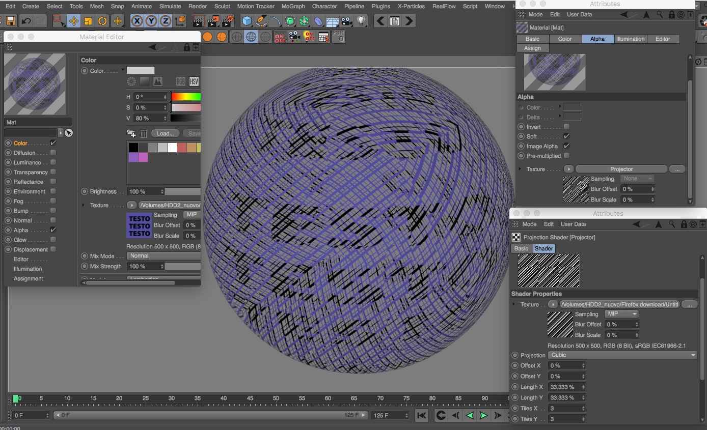 come da immagine allegata ho un problema che non riesco a risolvere. Vorrei sovrapporre su un piano due texture, precisamente un canale alfa con mappatura cubica e un testo con mappatura UVW. Il risultato che sto cercando, e che non riesco ad ottenere, è un'immagine che possa restituire il testo mappato in UVW e forato dal canale alfa.