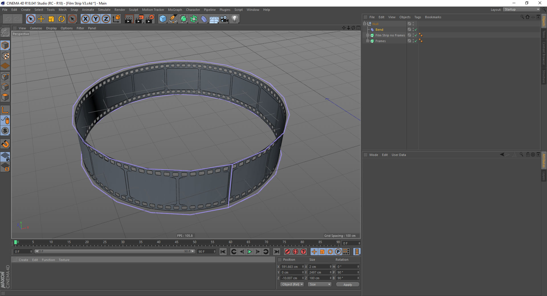 I am trying to build a film strip that will circle around a sphere, like rings around a planet. I have built the film strip and now am trying to bend it into a circle. I am using the Bend object to do this and it bends but unfortunately, it adds a cap on the top and bottom. I have attached some screen grabs to show what I am talking about. Any tips would be greatly appreciated.