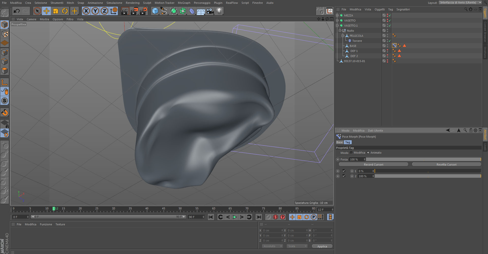 Ho scartato pure i deformatori, poichè ho deciso di utilizzare il morph per miscelare il prodotto iniziale con quello deformato.