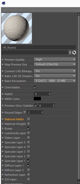 ciao ;) giusto una domanda: ma perchè non ti crei direttamente il materiale in vray invce di crearlo prima in cinema e poi convertirlo in vray? :shock:
