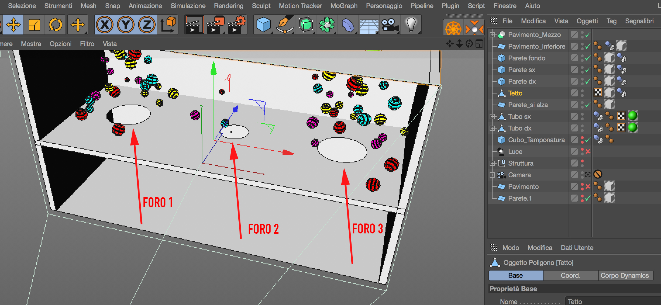 Salve, ho un problema. Non riesco a far incanalare le sfere nei 3 fori del pavimento 2 (allego img) e continuare a farle scendere sul pavimento 1 . Nelle impostazione del tag ''Crea Collisore'' non trovo nulla. Ho provato anche a non applicarlo ma le sfere rimangono li . Grazie.
