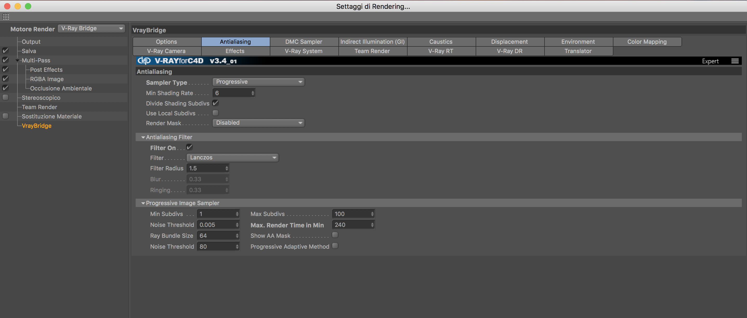 La seconda tecnologia, ovvero la IR, Irradiance map, e' una tecnologia 3D, molto 3D, ma un po più sporca, che provoca macchie, rapporto prestazioni e risultato ottimo, e' quella che parte dopo e usa i quadrati dei processori e la vedi andare in giro prima del rendering, ora fa mono passate, quindi ne fa sempre una, leggermente più lenta, ma sempre apprezzabile. Unico neo, provoca delle macchie, esattamente quegli sbaffi di ombre e luci che si vedono in punti critici, può' scomparire se alzi il preset, o cercando appunto dentro i suoi parametri quello che si chiama Hemispheric Sub, ma in teoria alzando il preset dovrebbe andare via, ma non e' detto perché' nella 3.4 non si alza tanto quel parametro aumentando il presettaggio.