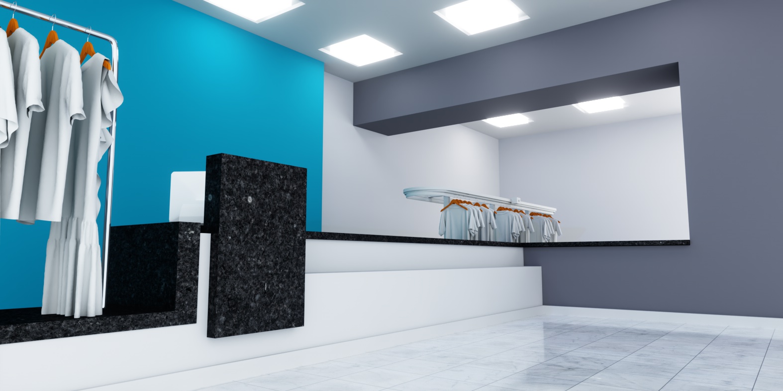 Poi, che ne so, il tuo cliente non ha un nome, un logo, potresti proporgli delle gigantografie in tema, inserire un estintore, evidenziare la zona cassa e ritiro capi con dei cartelli appesi, appendere un listino, inserire delle piante........ vedi tu!!