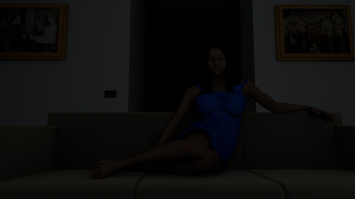 Ok, ci sto lavorando. Ho illuminato la scena un po' come suggeriscono i link proposti da te. Ho una luce molto bassa, su toni bluastri, che viene dalla televisione davanti al divano. Poi ho una luce molto più intensa, laterale, che crea chiari e scuri sul personaggio e sull'ambiente circostante. Ciò che non mi convince è la parete a destra che sembra un po' troppo illuminata. Il personaggio, invece, mi sembra illuminato più o meno bene. Cosa ne pensate? E per tutto il resto (posa, scena, oggetti, personaggio, ecc.)?