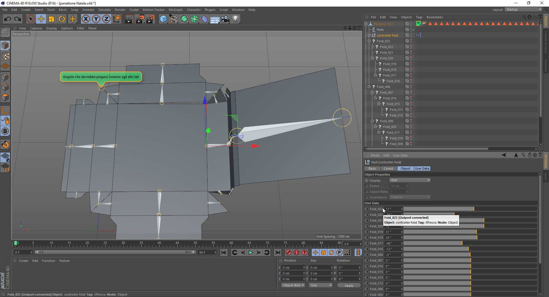 ogni piega deve essere in cascata del proprio blocco......nel tuo file se muovo Fold_023 la gerarchia è corretta e lo vedi tu stesso animando i parametri