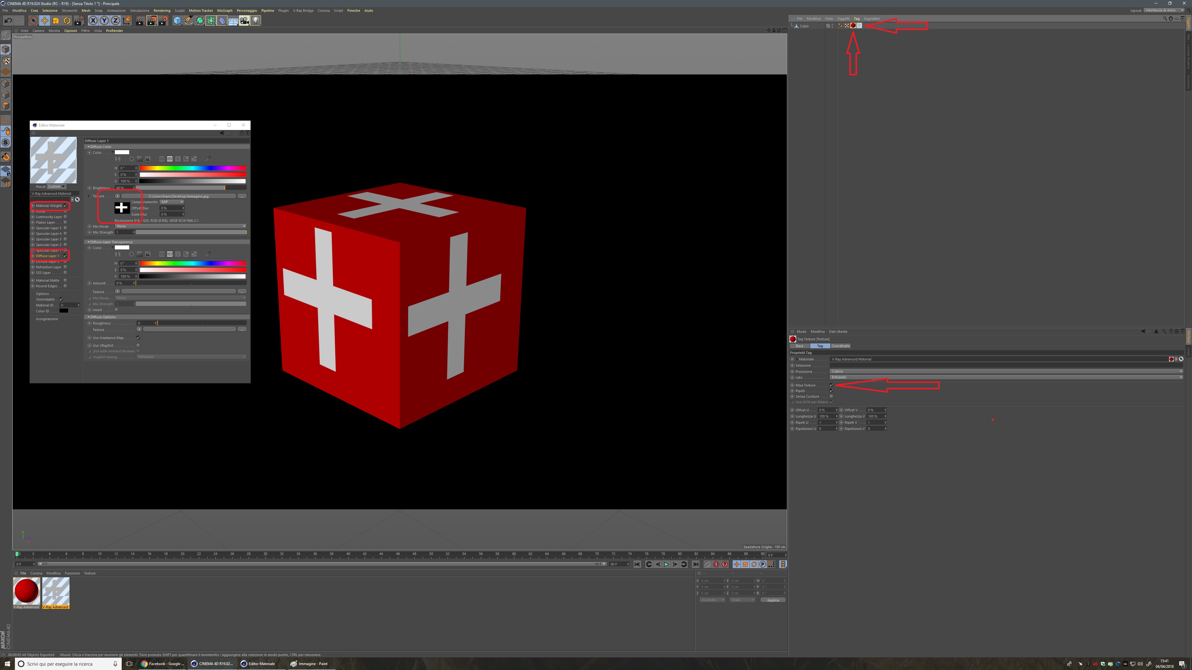 - Metti la texture croce nel "Diffuse Layer"