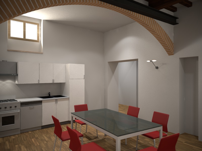 Sulla cucina-pranzo le finestre sono alte e piccoline pertanto se uso solo luci diurne ho paura che il render finale sia troppo cupo.
