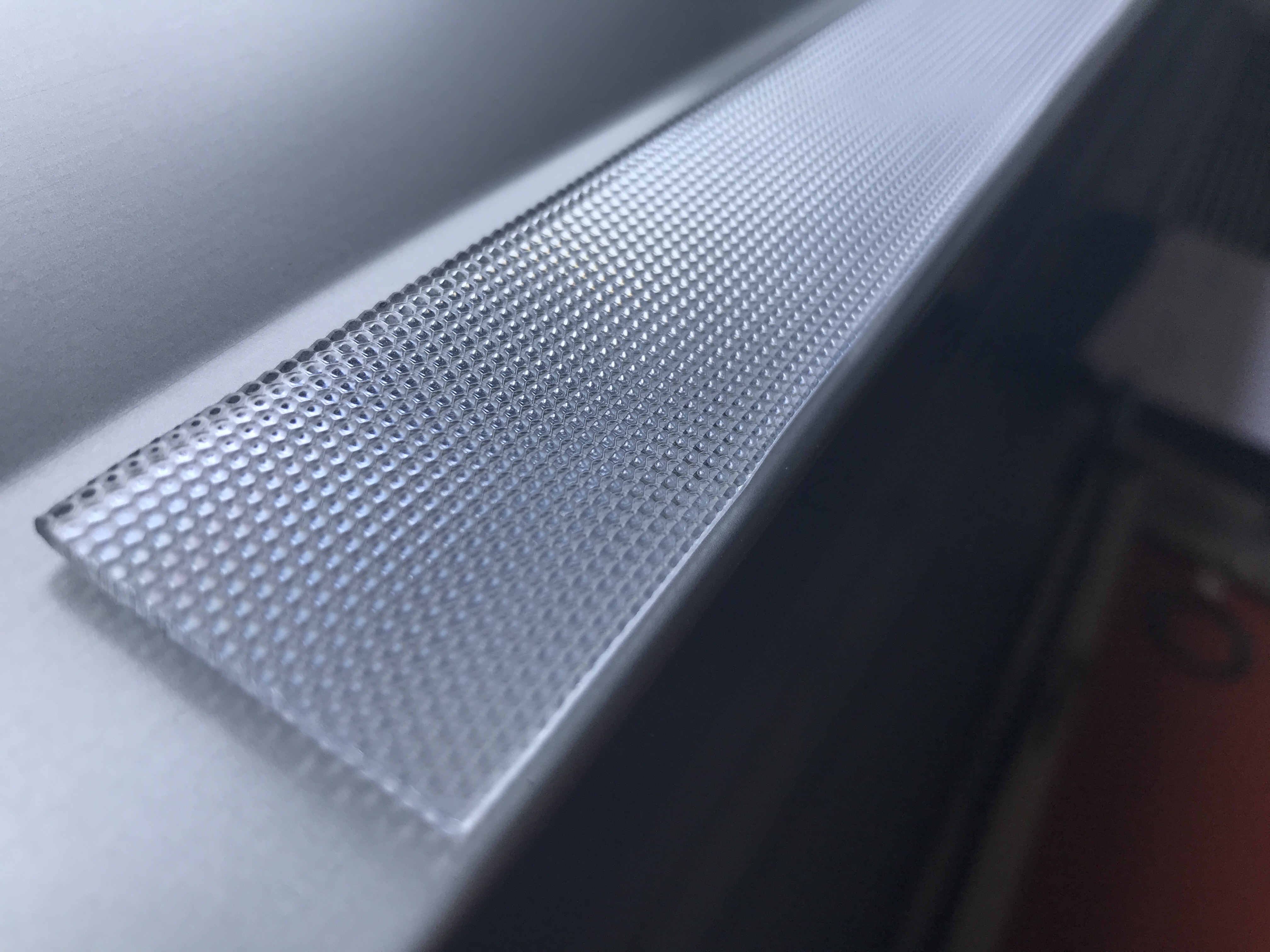 Ha una costruzione identica al vetro, unica differenza ha un'IOR più basso e naturalmente una superficie zigrinata. Per ricavarti il bump/displacement/normal ci sono tecniche apposite, ora te le spiego passo passo.