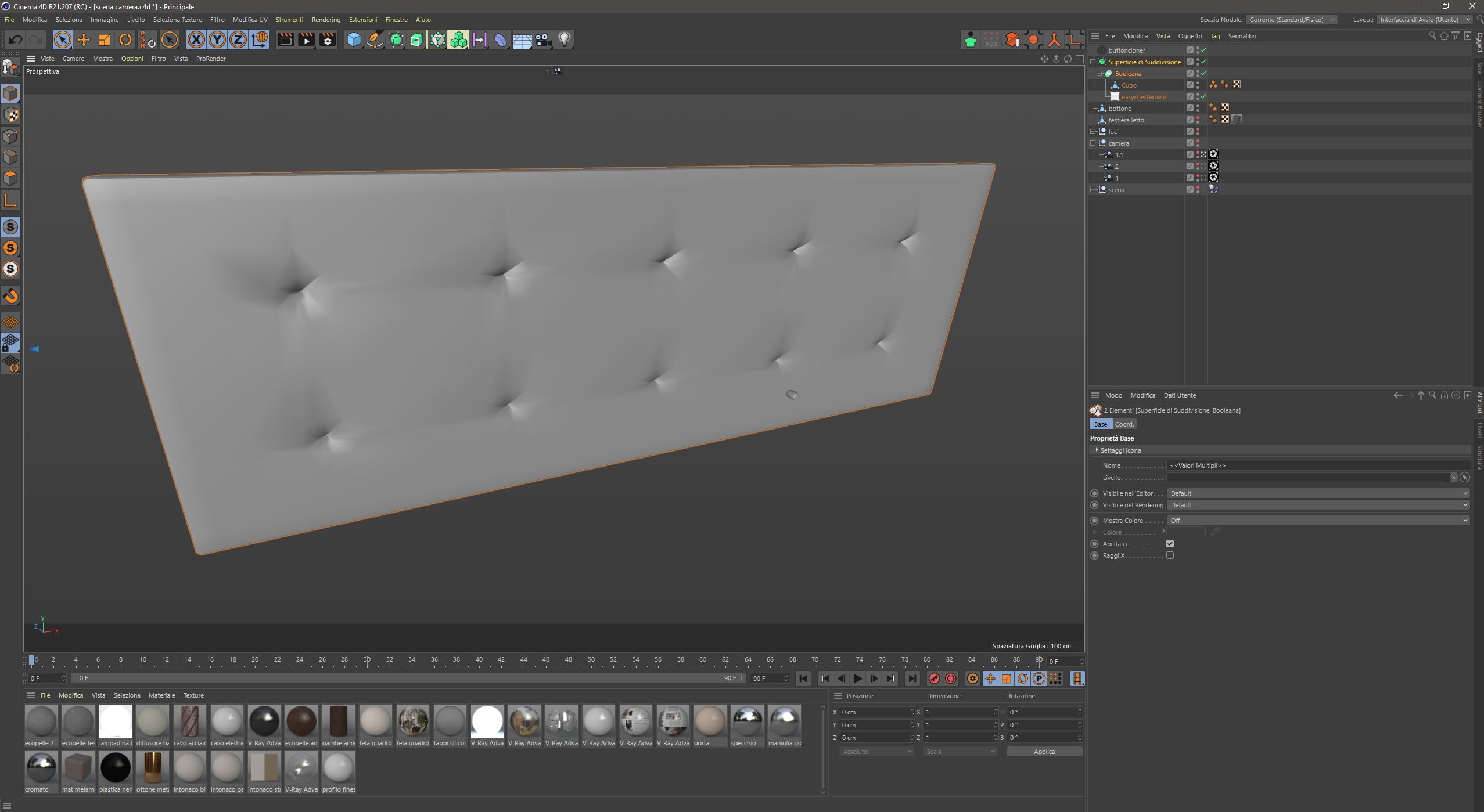 Non vedendo però le suddivisioni ,prima di convertire, mi chiedevo se fosse c4d di default oppure se fosse possibile vederle in tempo reale prima di rendere editabile l'oggetto. L'esempio del cubo spiega il mio problema praticamente quello del capitonnè speravo potesse riuscire a farvelo vedere. Prima di convertire la testiera del letto non vedo fino a dove arriveranno le pieghe tra i i bottoni ,per esempio, ma lo scopro solo dopo... e dato che i parametri che gestiscono la geometria sono più di uno