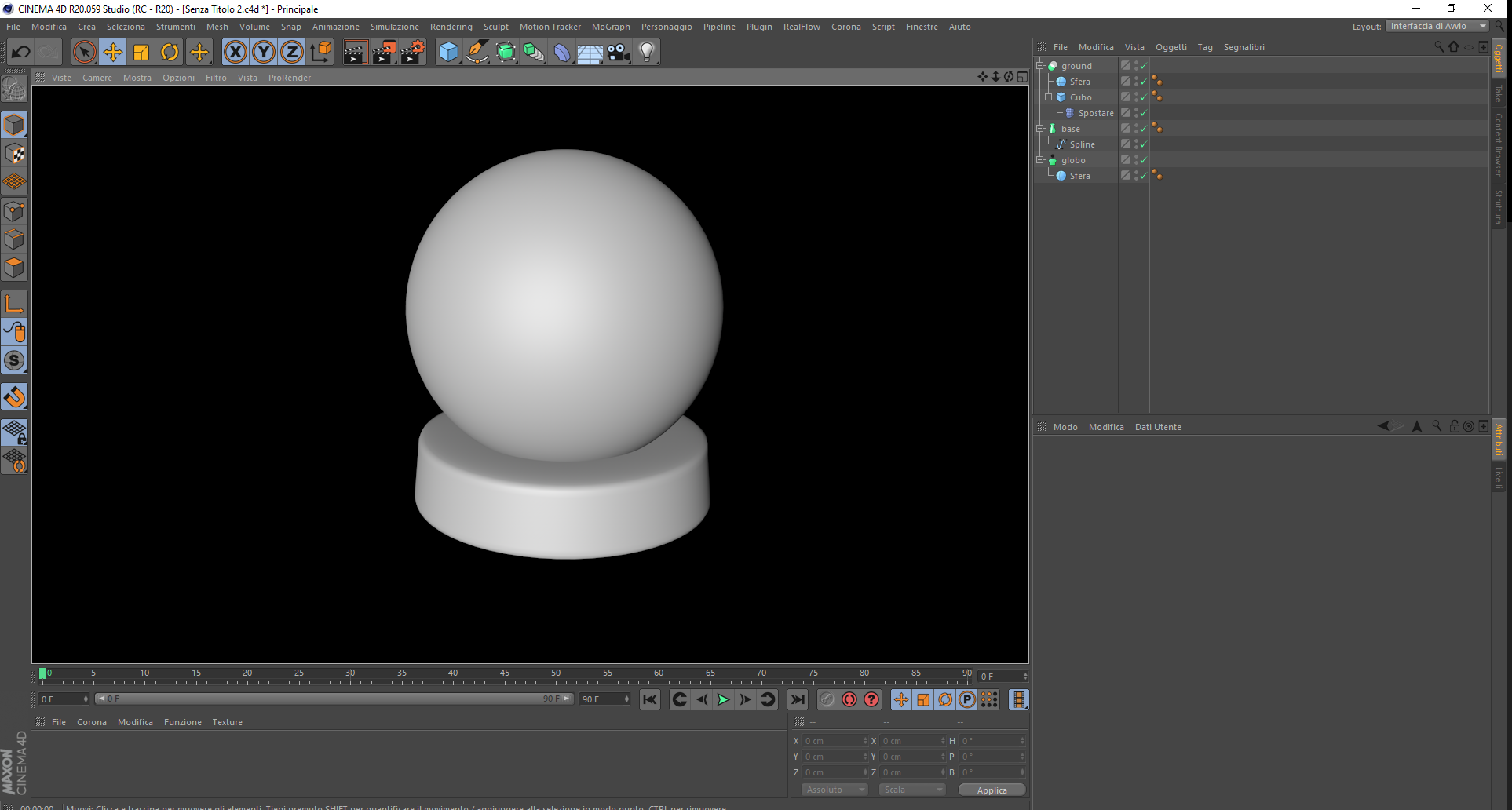 Direi che sei ancora ad uno stato embrionale, mi pare tutto ok. Attento pero' che non puoi fare la palla di vetro con la sola sfera di cinema, prima devi "unirle" facendo lo spessore. Il vetro ha uno spessore ben preciso, se non lo rispetti quando metterai il materiale sopra viene male.