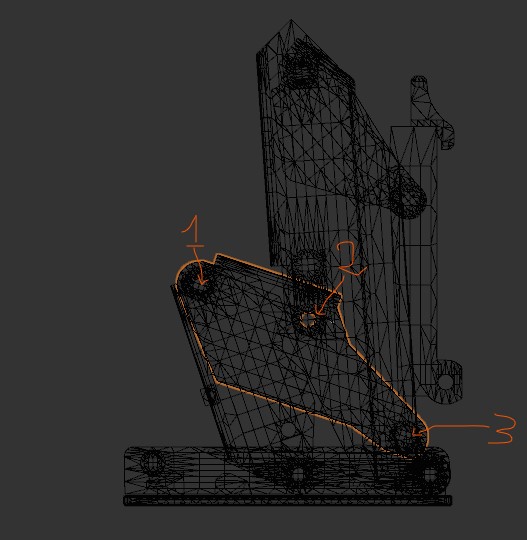 Ti ho fatto uno schema dove si evince chiaramente il difetto del modello (assi decentrati e pezzi mancanti) e sottesi i 3 punti (dove il punto 3 ruota e non trasla) il rig è abbastanza semplice...