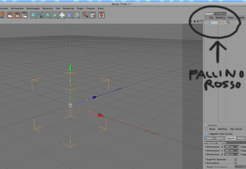 se tutto va bene sei in questa situazione....hai il pallino rosso selezionato in corrispondenza del tuo oggetto. Questo ti nasconde l'oggetto nella scena. In questo caso se lanci il rendering in uscita l'oggetto esce nella tua immagine. Mentre con i due pallini rossi non ti esce nemmeno nel rendering.