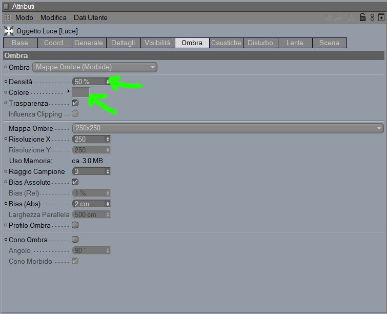 Il colore dell'ombra ! Ebbene si .. nn cambia colore l'ombra .. all'inizio era scurissima così misi grigio sempre + chiaro, sempre + chiaro.. Ma l'ombra rimaneva sempre uguale.. Alla fine per fare la prova l'ho messa bianca.. Risultato !? Il colore bianco o nero nn cambia nulla.. L'ombra è sempre uguale.. Come mai !? Io vorrei delle ombrette grigio chiaro nn scure.. dove posso settare questa opzione ?