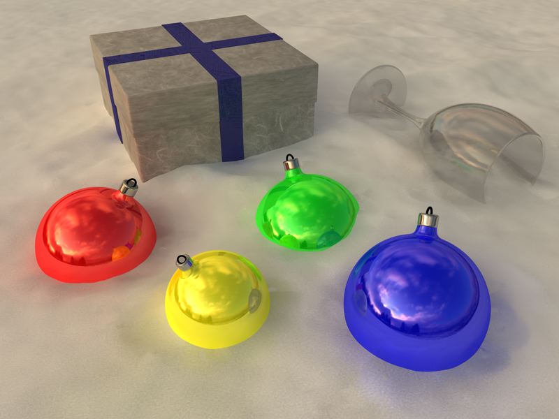 questa scena viene sul giallognolo per via dell'immagine HDRI che e' sul giallo... (la neve e' molto bianca originale), ho provato con lo sporco ma viene un casino perche' c'e' il rilievo sulla neve (sembra un campo infettato da uno strano virus)..