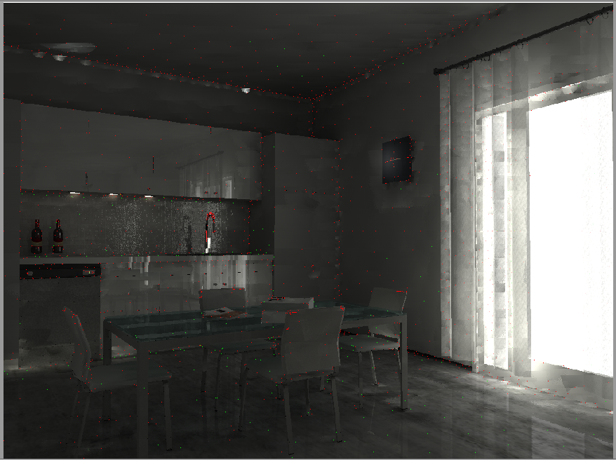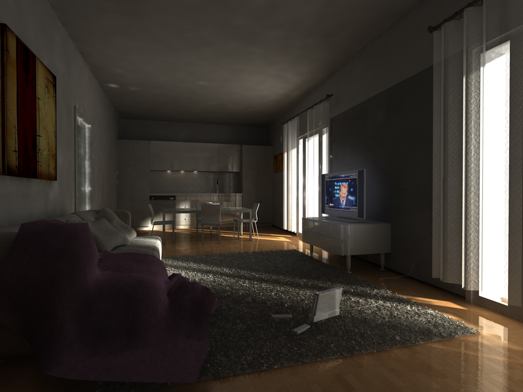 luce infinita a 200% , luci area alle finestre color giallo intensità 8% e decadenza cubica inversa