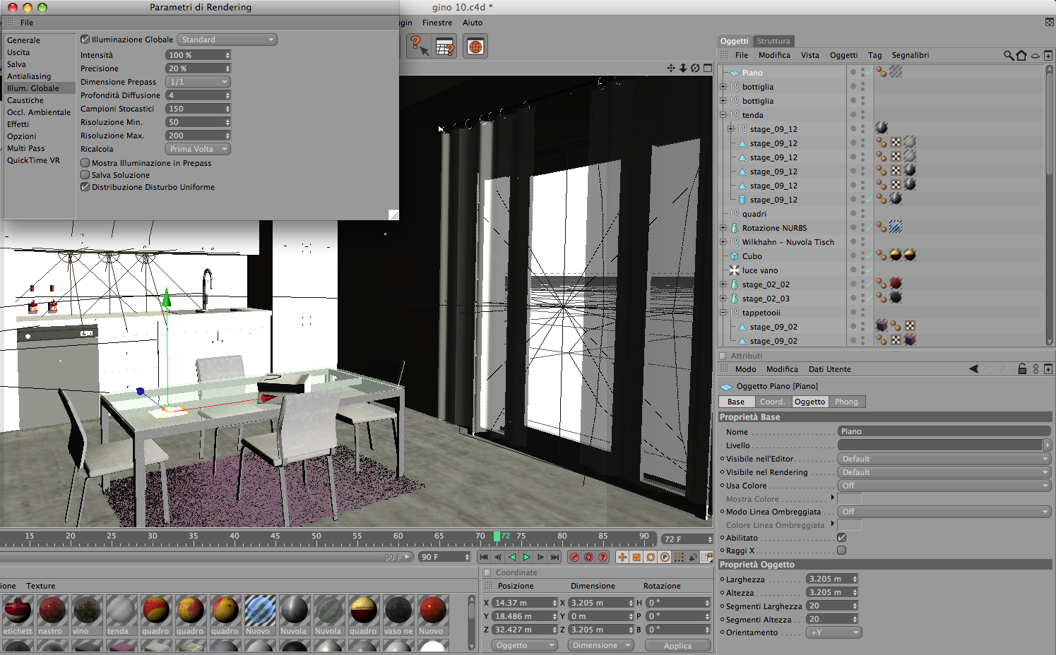 per la tenda e' un classico problema della IG di cinema4D...mettigli un tag sopra magari dicendogli di non essere visto dalla IG...risolve un po il problema. gli metti un tag compositing...