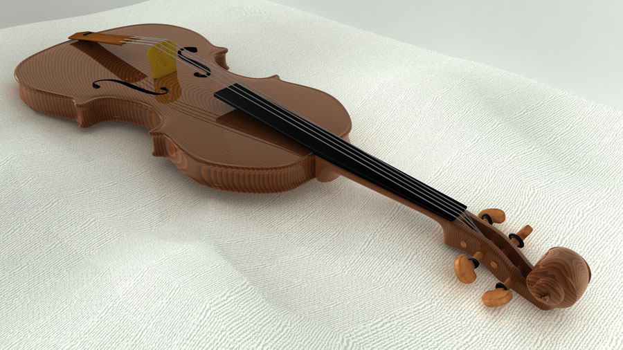 complimenti, però il corpo deve essere per forza piu gonfio e il ponte del violino è molto piu basso di come lhai fatto. In piu ce anche la texture del legno che non mi convince molto....che sono tutte quelle linee? hmmm....