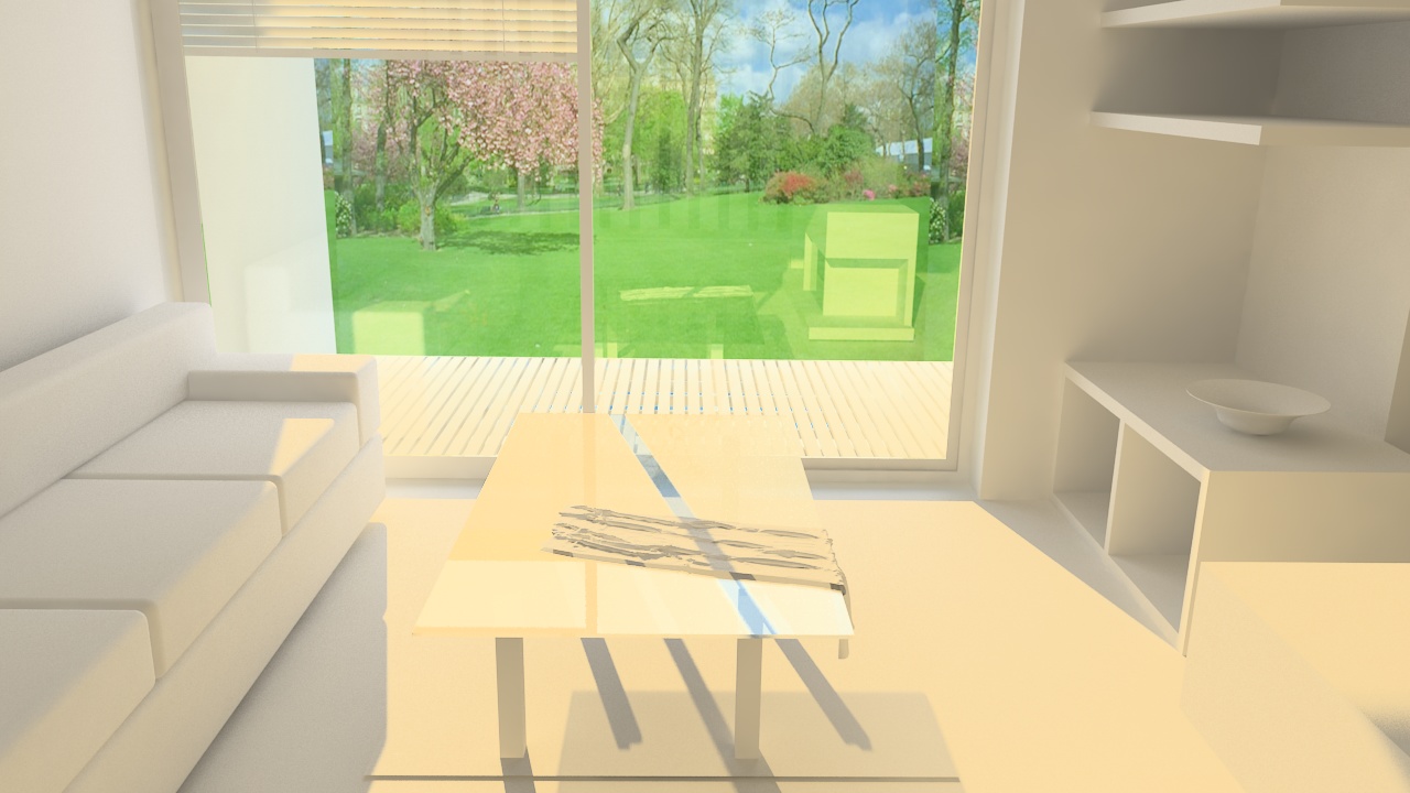 per il background ti consiglio di utilizzare una foto di un giardino esterno creandola con un piano verticale mettendo un tag compositing di vray e spuntando cast shadow cosi non proietta ombre. il giardino infinito fa parecchio angoscia e toglie qualsiasi barlume di realismo alla scena