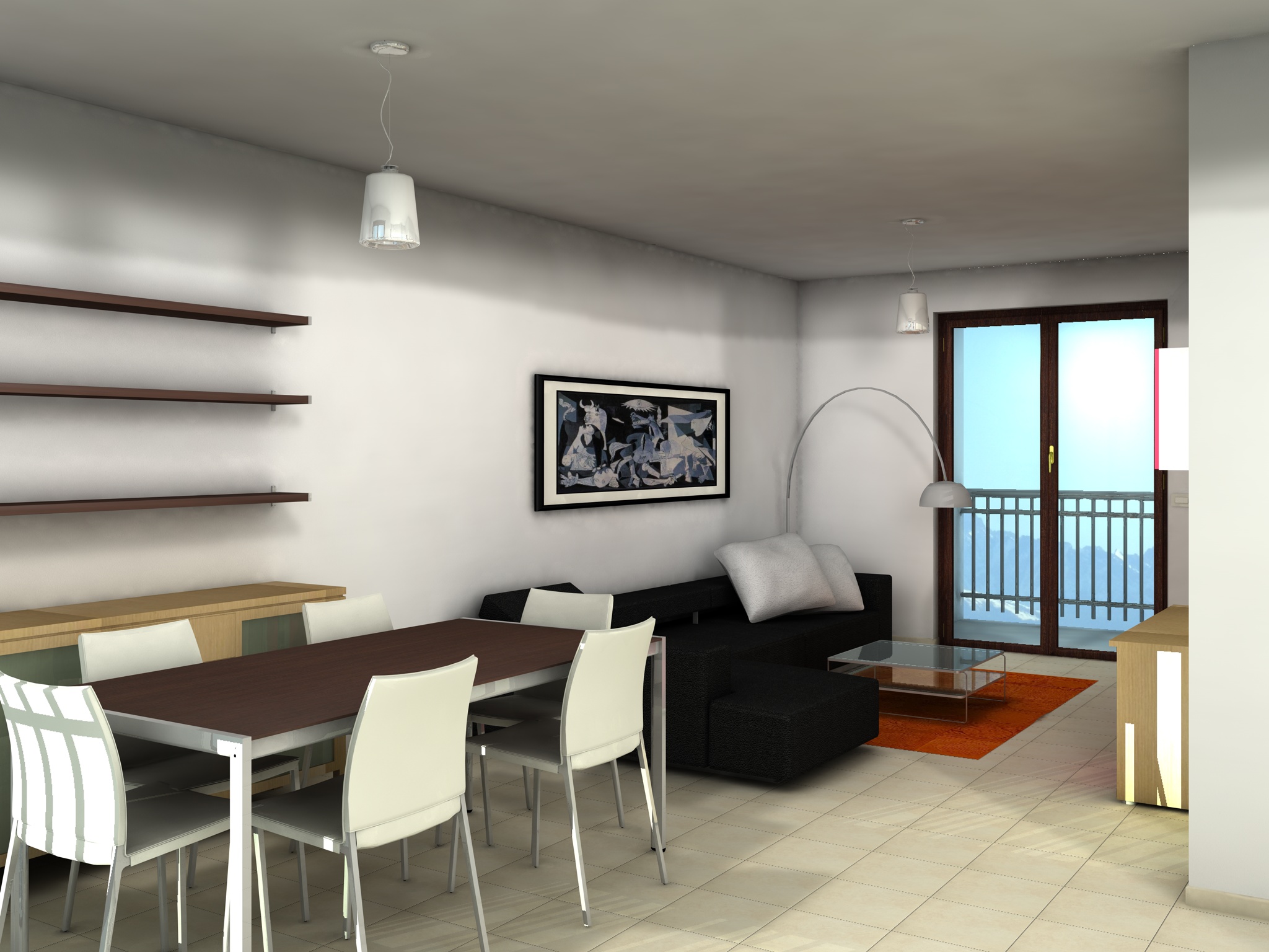 l'ombra sotto le sedie e il tavolo nn si capisce da cosa sia generata (noi sappiamo che è conseguenza della luce omni ... ma nell'immagine nn mi sembra che si giustifichi)