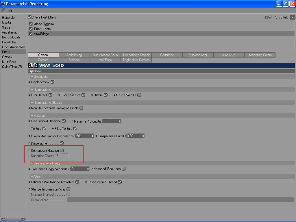 In Vray opzioni.conteblackheim ha scritto:Io non ho override material .. come mai secondo voi?