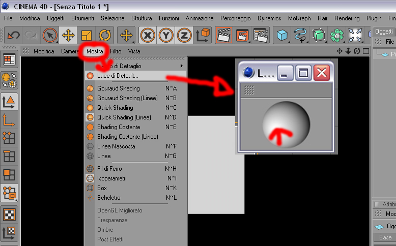 una volta fatto questo ti comparirà una finestra con una SFERA....clicca su quella mantenendo premuto il tasto del mause e sposta la luce a piacimento!!!!