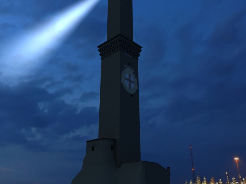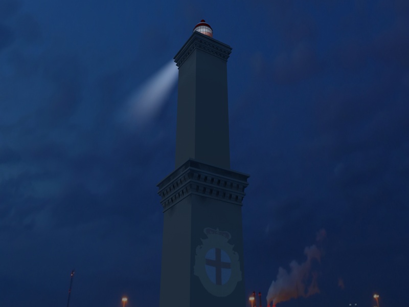 prova a lavorare un po' più di fino sulla luce visibile del faro, visto che sebra essere una serata abbastanza serena non credo si veda così tanto la luce della lanterna (anzi Lanterna...) e quand'anche la disturberei un po' di più... così sembra proprio un faretto da teatro...
