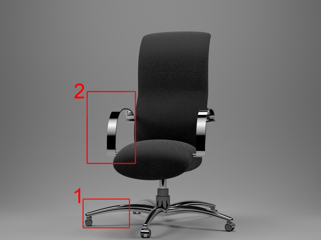le parti evidenziate 1 e 2 le devo sistemare con l'antialiasing credo e vorrei una dritta su come settarlo, inoltre se non chiedo troppo vorrei un paio di consigli su come migliorare la "pelle della poltrona" ciao e grazie.