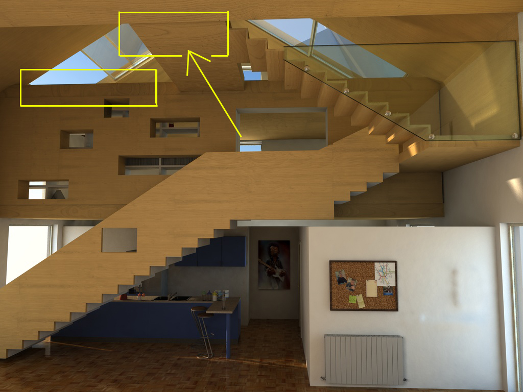Piccolo appunto: secondo me la venatura del legno nel sottoscala è un po grande e orientata nel verso sbagliato.... prova a darci un'occhiata.