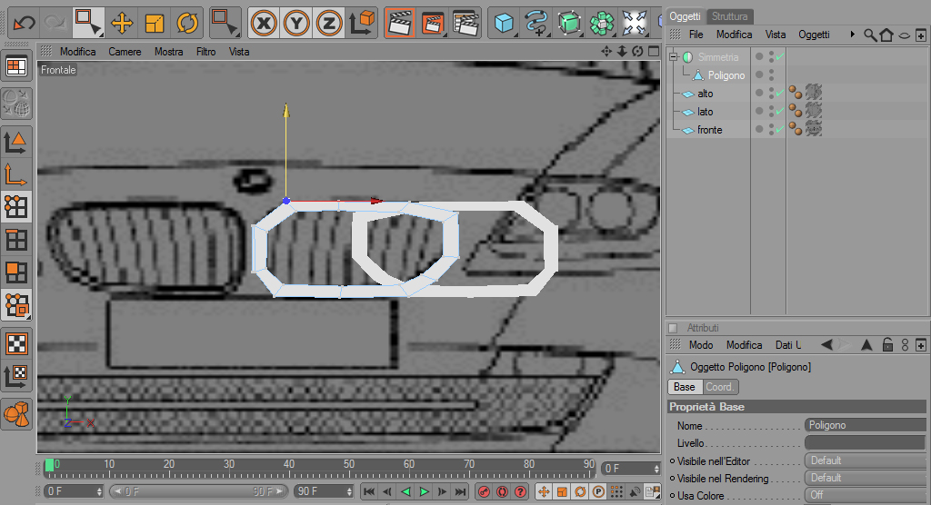 Ho un problema con il settare i punti dopo la prima estrusione per poi inserire il primo anello del mascherino in un oggetto simmetria.
