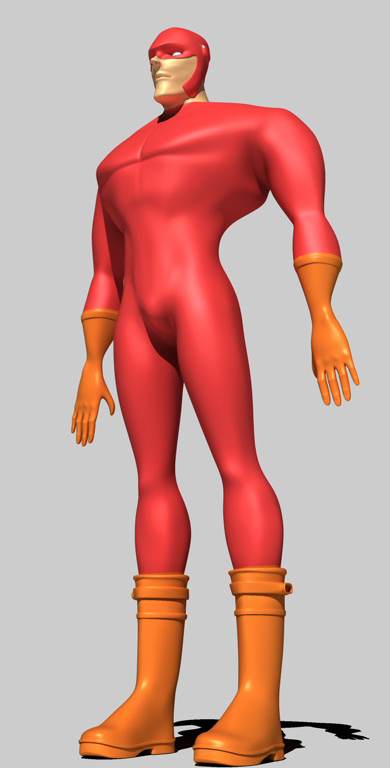 Impresa ardua ma l'unico modo per imparare e sbatterci la testa e quindi... Ho trovato su internet un soggetto di riferimento, un super eroe cartoon molto sproporzionato, con relativi disegni, frontale e laterale, e ho iniziato seguendo un tutorial per 3D studio sulla modellazione di un character adattato a Cinema ed ho realizzato il body del personaggio, con non poche dificoltà e iniziando da capo diverse volte prima di arrivare a un risultato che mi piacesse!!