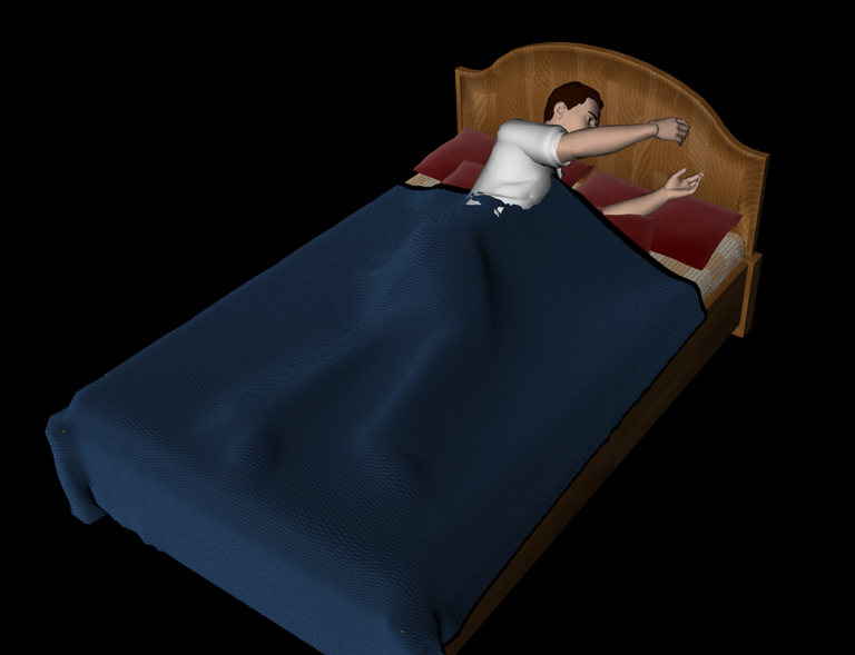 Probabilmente la coperta tende a scappare via perchè c'è poso attrito (FRICTION) tra essa ed il letto...prova ad aumentare quel parametro nei tag dell'oggetto coperta e dell'oggetto letto, la coperta dovrebbe essere più refrattaria a scivolare via in quel modo...SPERO!!