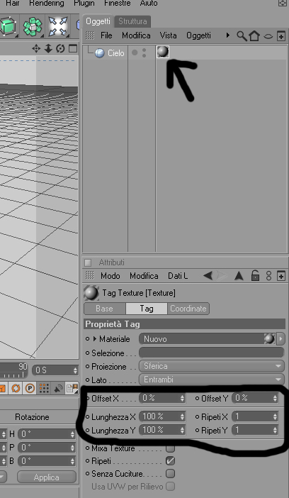 poi se guardi sopra offsetx c'è il parametro PROIEZIONE...togli sferica e metti un'altro stile di proiezione