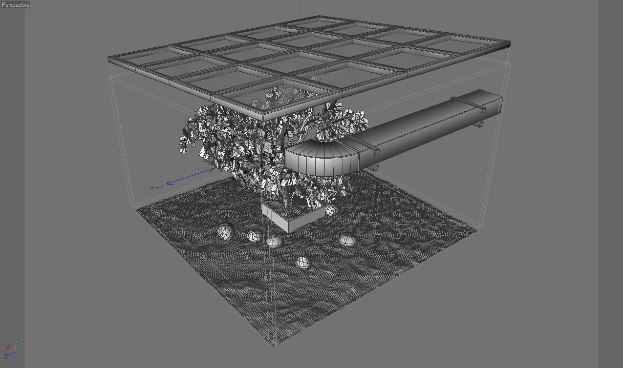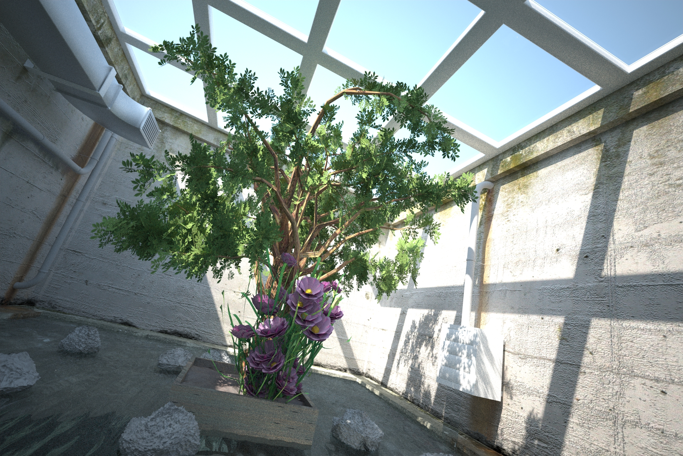 l'idea generale è di un piccolo insieme di piante che sono cresciute in una specie di serra abbandonata o lasciata all'incuria. Non so bene come proseguire... credo che dovrei aggiungere ancora un po' di tubi e robaccia varia, rompere i vetri del lucernario, e aggiungere un po di foglie e sporcizia sul fondo.