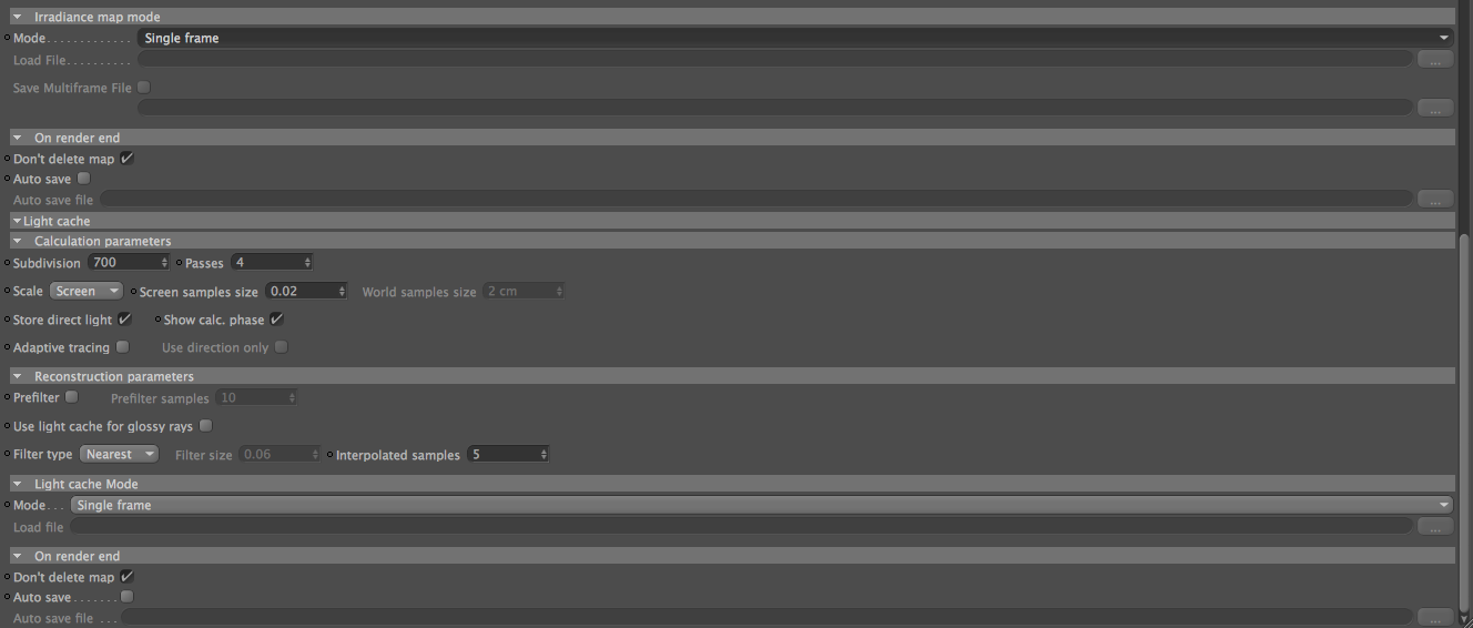 Parti da zero e attiva i parametri del bridge modificando nell'irradiance map min rate -3 max rate-1