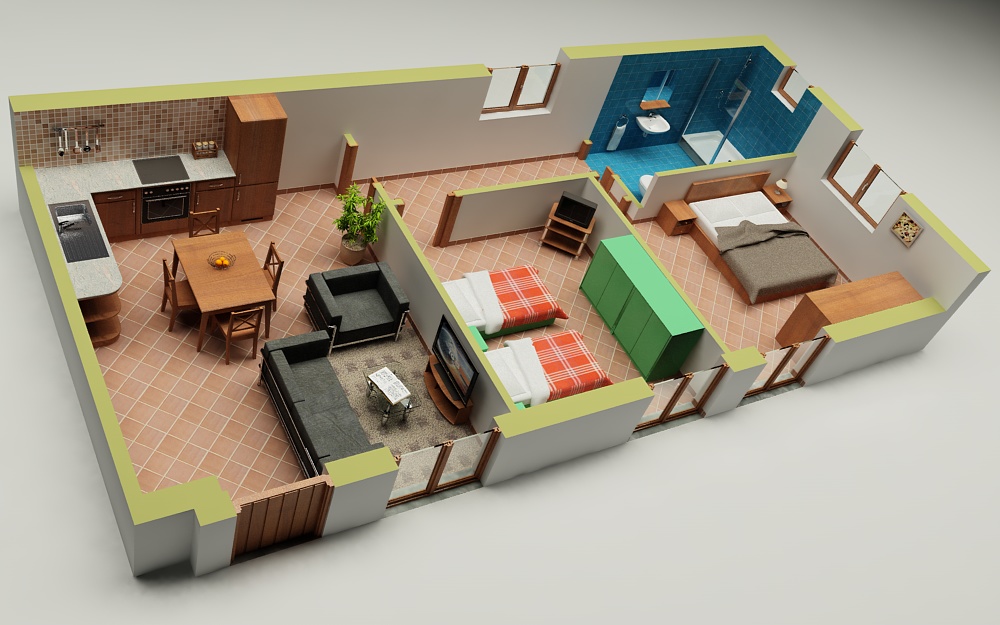 si si approvo, un'unica domanda i mobili delle stanze sono anch'essi tagliati o sono di quella misura?