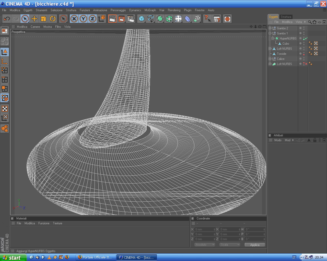 Grazie per la risposta....hai ragione quello è solo il porta bicchire.... per il gambo ho usato un cubo e l'ho inserito in una hyper nurbs......mentre per la base ho usato una loft nurbs...