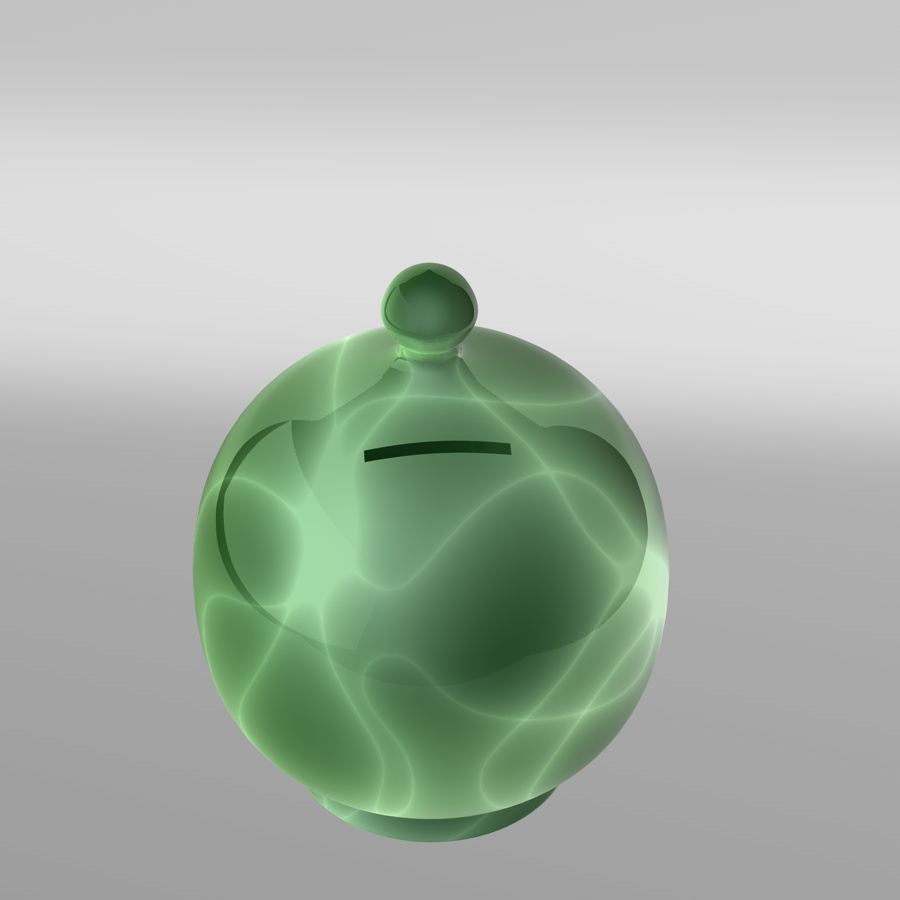 Nel tuo caso dovresti modificare la spline usata per il LatheNurbs, per fare in modo che il salvadanaio abbia appunto uno spessore (come nella realtà.