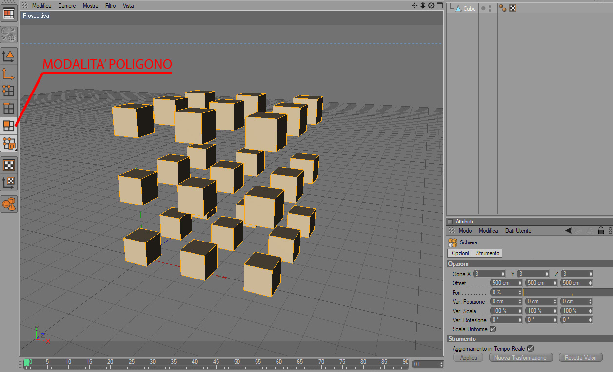 - rendere l'oggetto modificabile (se è una primitiva ovviamente! (basta premere il tasto C))