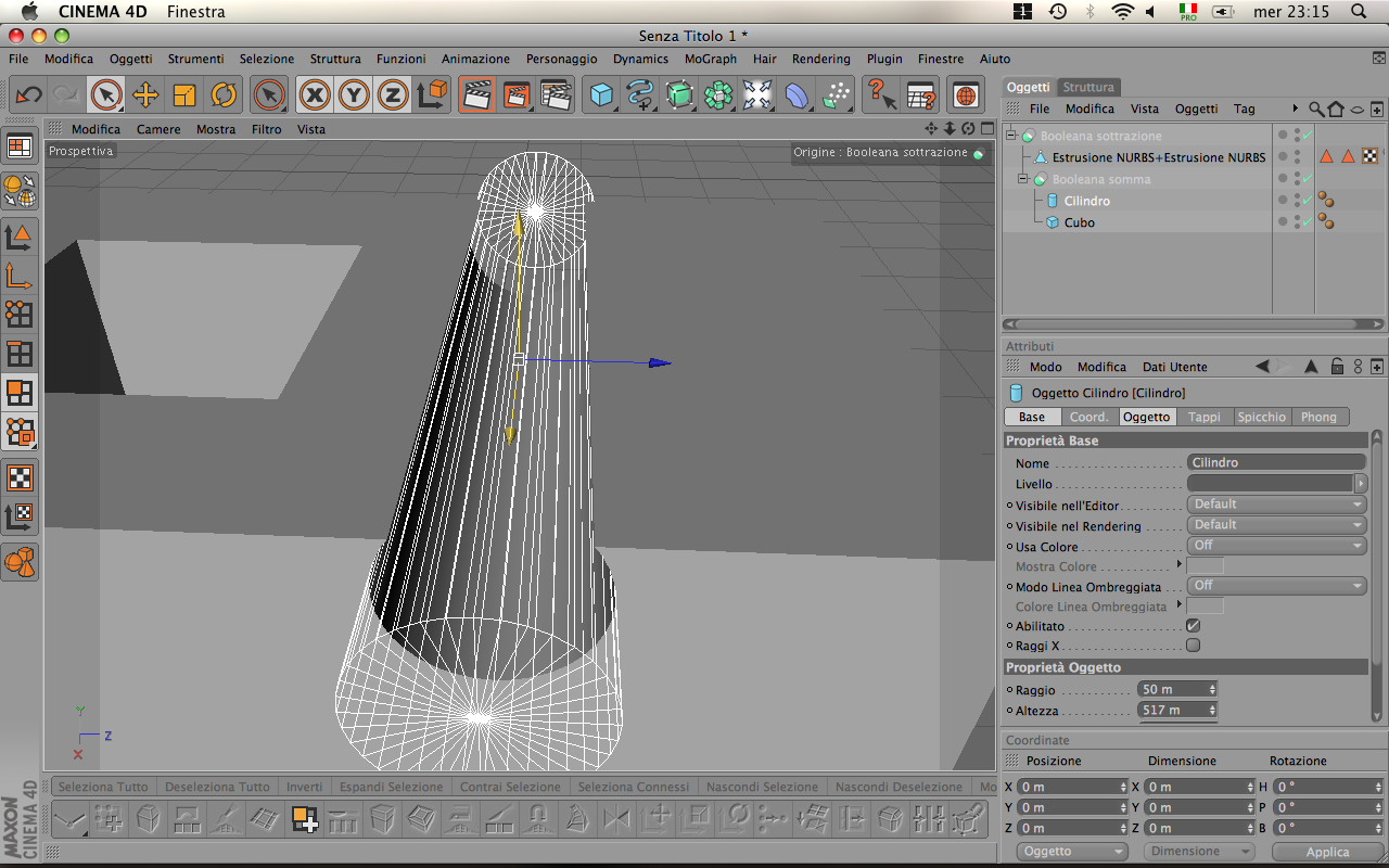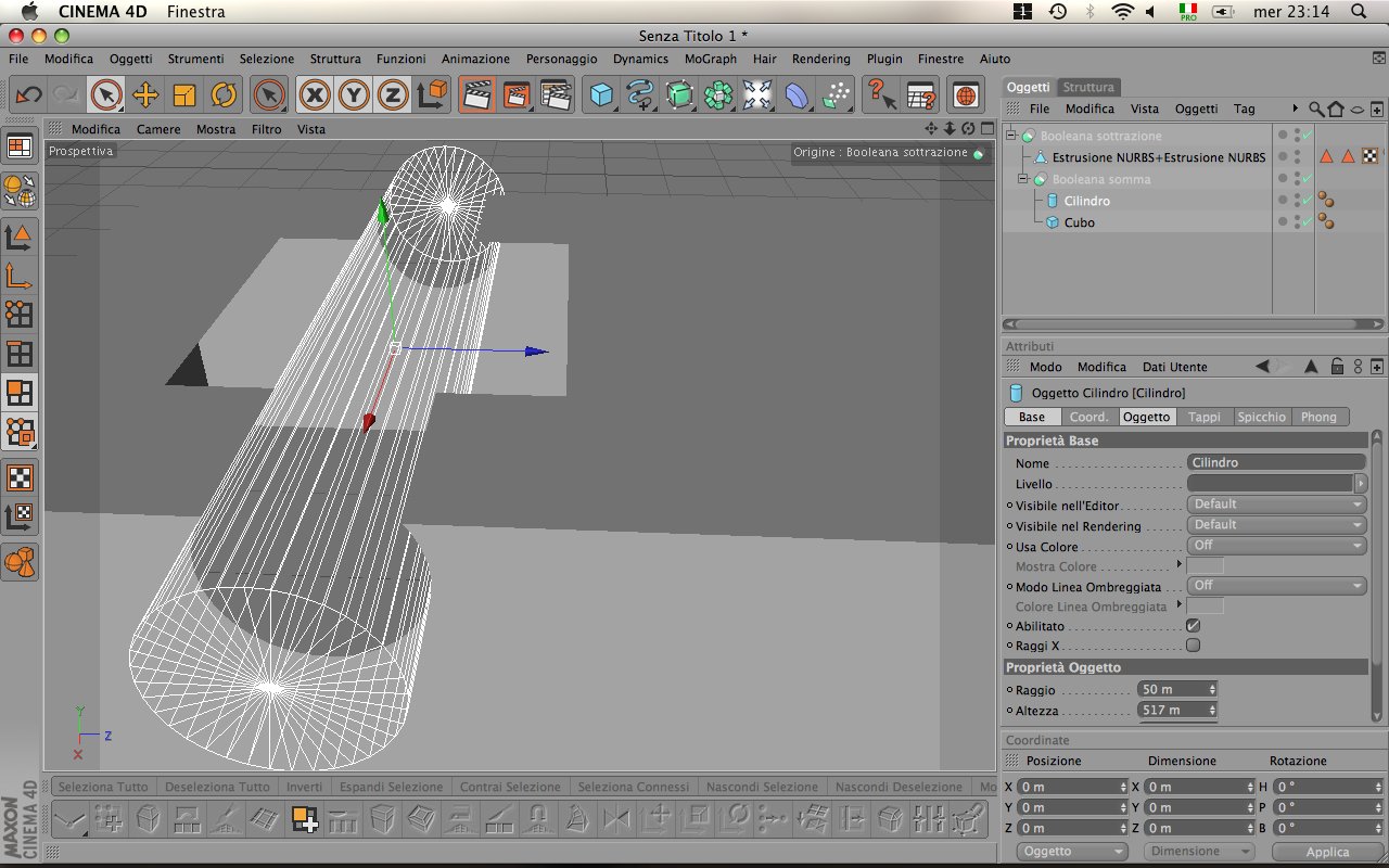 e da circa un mese che uso cinema..(per la tesi)....e ho spesso problemi con le booleane.... è assurdo... a volte non ne capisco il comportamento... e perdo ore a volte intere giornate!Capita che quando ho piu oggetti estrusione nurbs che si intersecano, ed io sottraggo alla loro somma un solido posizionato nel punto di intersezione dei precedenti....beh e qui che succedono cose strane .....a volte non crea i tappi...quindi svuota l'oggetto..altre volte rimangono pezzi strani...
