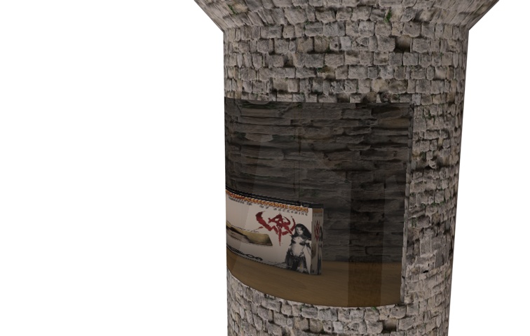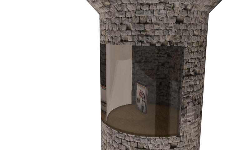 2 - per rendere bene dovrebbe avere uno spessore ma: se lo metto sia sulla parte interna che su quella esterna si creano troppe riflessioni, se invece cancello la "parete interna" dell'espositore la scena dietro il vetro si deforma in modo assurdo.