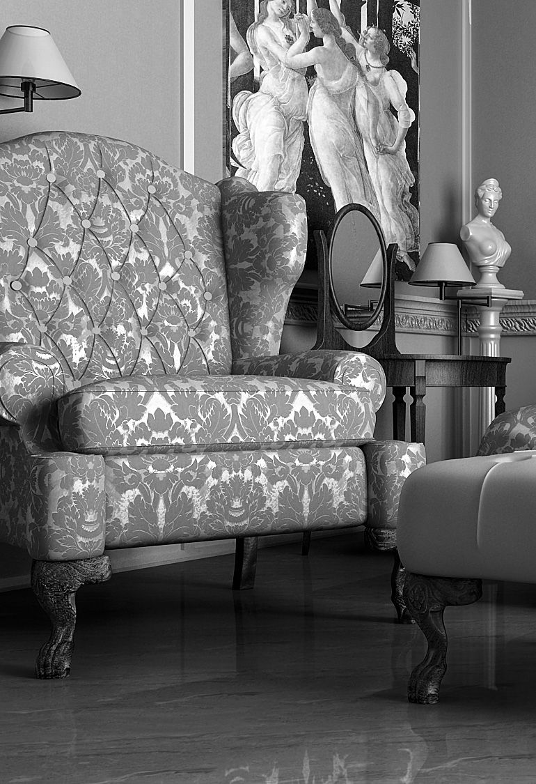 Questa poltrona l'ho modellata con cinema... compreso i piedi... nel tentativo di migliorare le mie scarse abilità di modellazione.