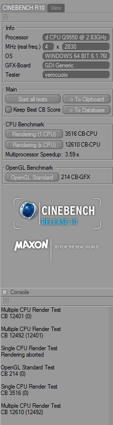 Ah, mi sono scordato di dire che sto usando windows 7 64bit e ho un processore intel core2 quad q9550- 2.83GHz