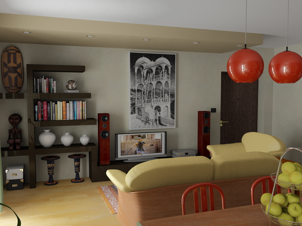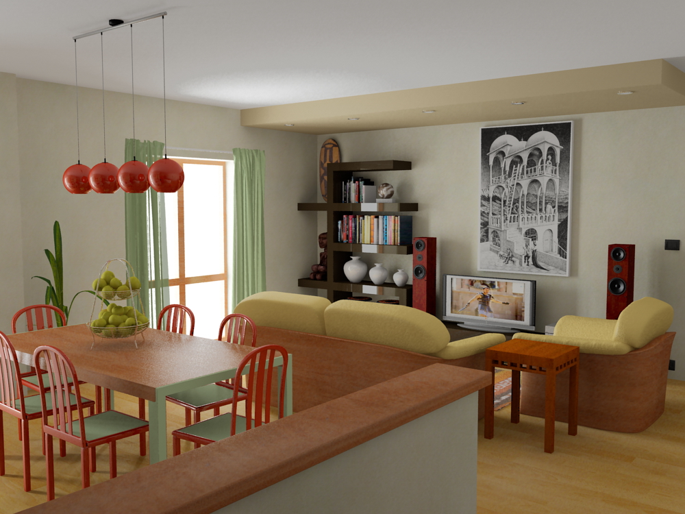 Per un lavoro di ristrutturazione nel quale 2 stanze diventavano un unico ambiente ho fatto questi renders in Vray.