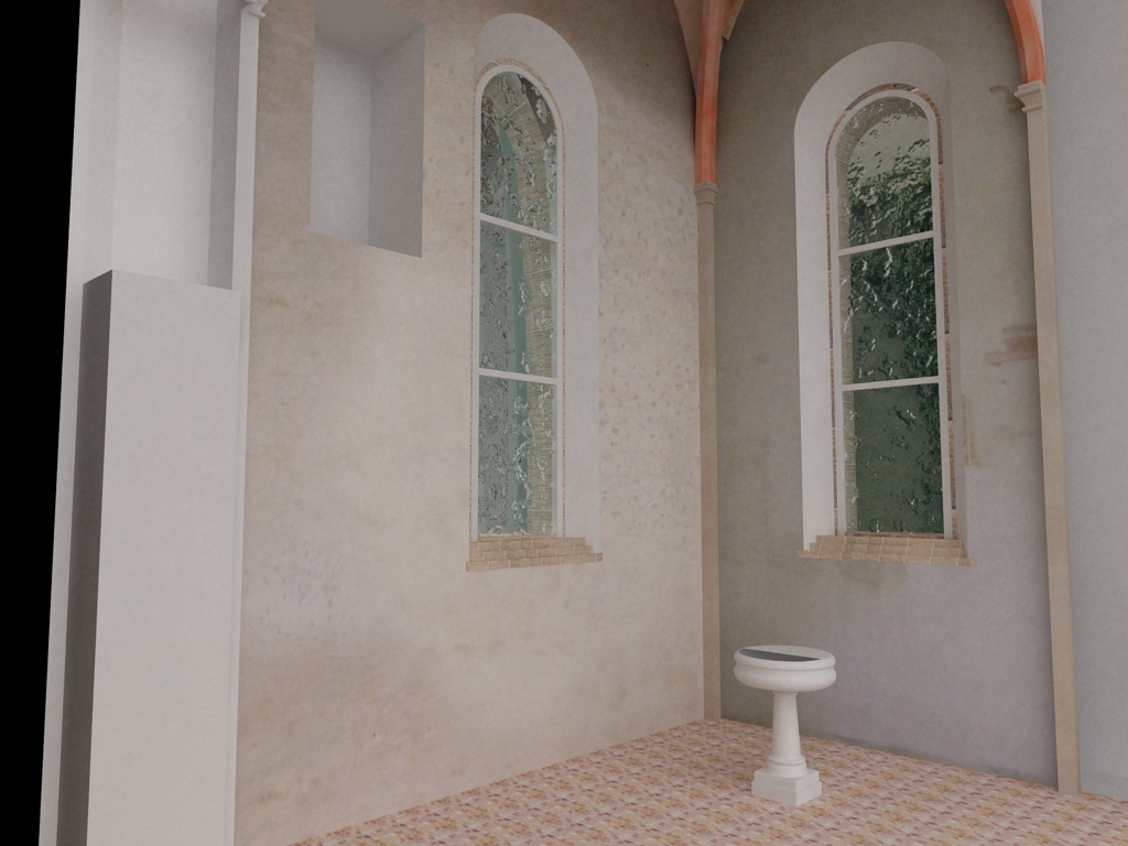 aumenta l intensity multiplier a 10,cosi le ombre saranno un po meno nette...poi dai un rilievo a quei mattoncini infondo a sinistra...e ancora,rivedi il materiale del muro che e troppo piatto,anche quello delle nervature delle campate,che e anch'esso piatto...dopodiche uscirà secondo me un buonissimo lavorogrendiza ha scritto:ps
