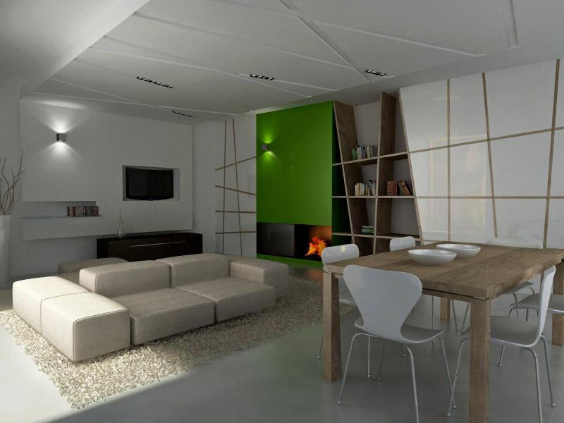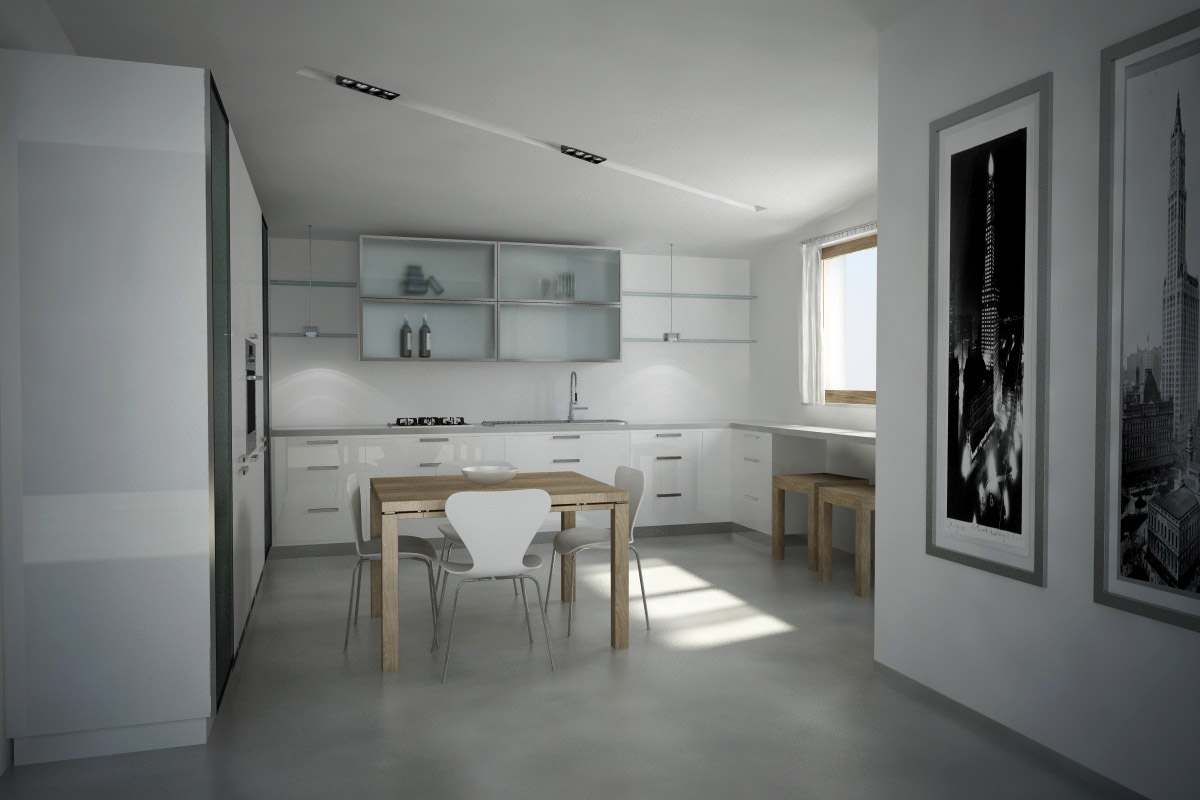 Ottimi render, ottimo progetto! E' tuo? Mi piace l'idea di ripetere quel disegno sulle pareti del living, sugli armadi e sul controsoffitto (anche se li sarei curioso di sapere come lo realizzaresti 8-) )