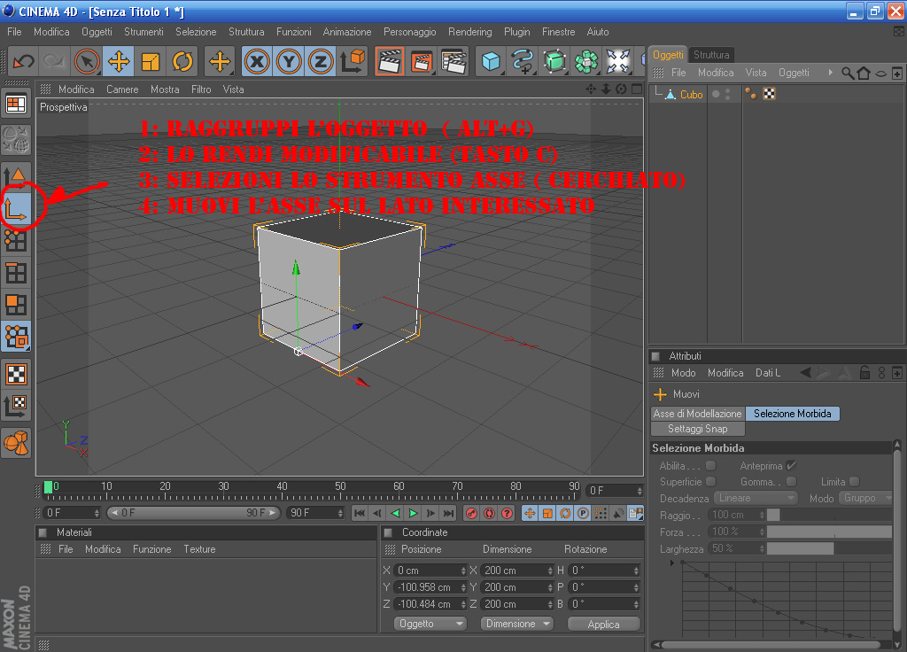In sostanza, inserendo un oggetto in gerarchia di un oggetto nullo, (precedentemente posizionato dove si desidera il punto perno) consente di utilizzare quest'ultimo appunto come perno.