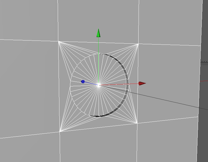 un altro metodo, che evita di creare curvature sui poligoni adiacenti al foro, è quello di operare su 4 poligoni anzichè uno unico al centro. Il procedimento è simile