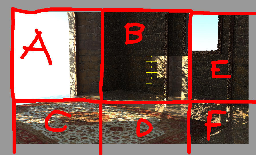 cmk, nella prova che sto facendo adesso, nell'ultimo passaggio, Vray parte a fare A, poi C,D e quando ho fatto lo screenshot stava facendo B. Dopodichè avrebbe fatto o E o F.