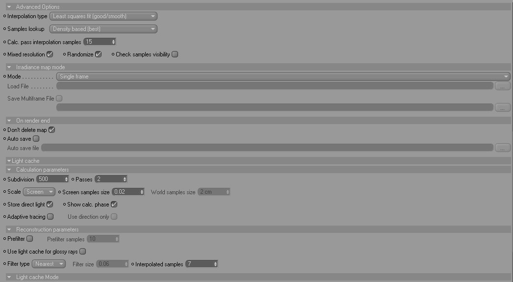 e sopratutto i parametri piu importanti (e probabilmente sono quelli a darti il problema quindi vai di preset) della light cache e irradiance map non li hai postati....