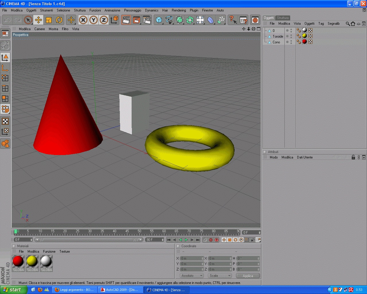 file esportato da autocad con il comando 3dsout ed "aggiunto" in un file vuoto di cinema